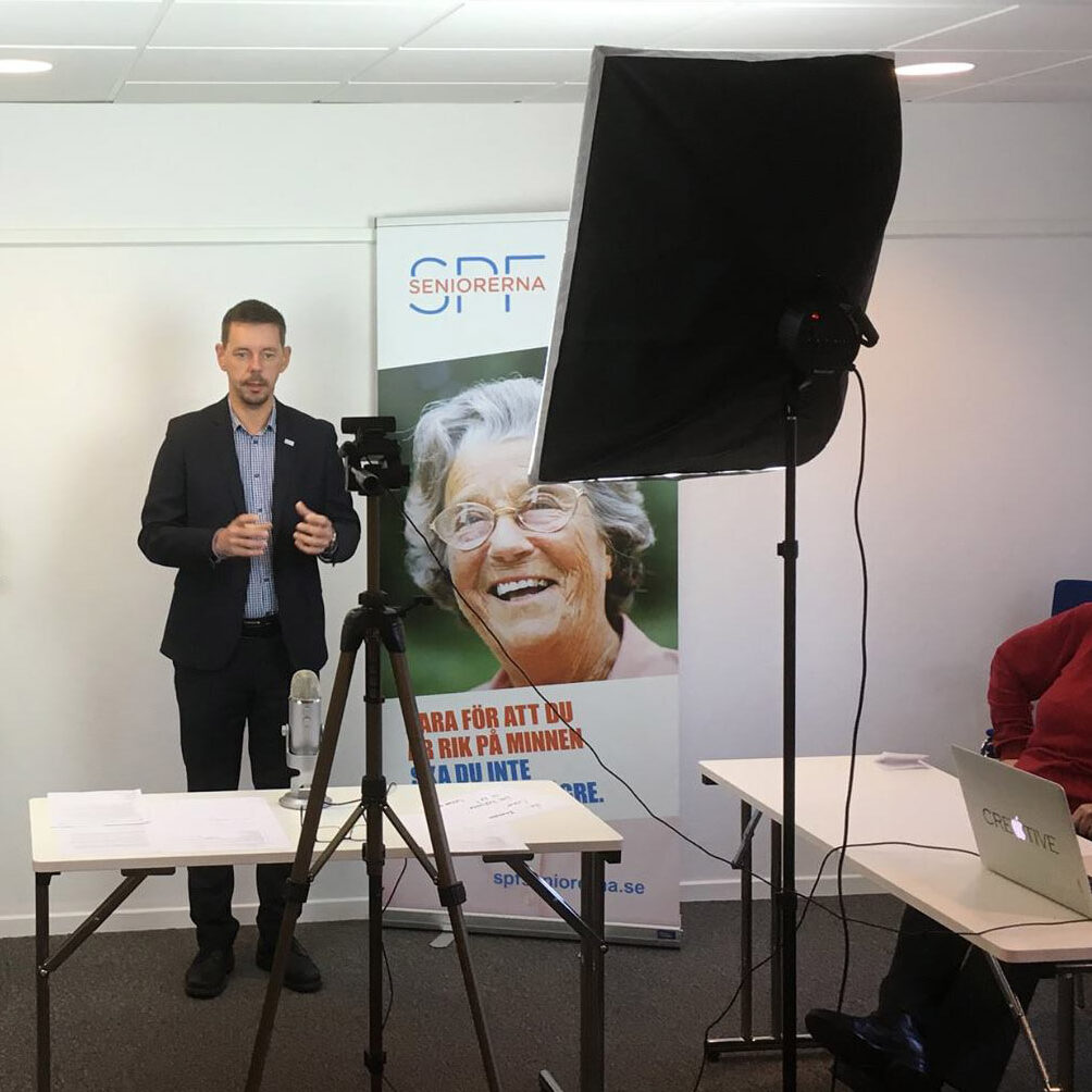 Uppdraget gick ut på att genomföra en webbsändning på plats hos kund. En studio sattes upp med ljudmixer, fyra mikrofoner, ljussättning, två kameror, etc.